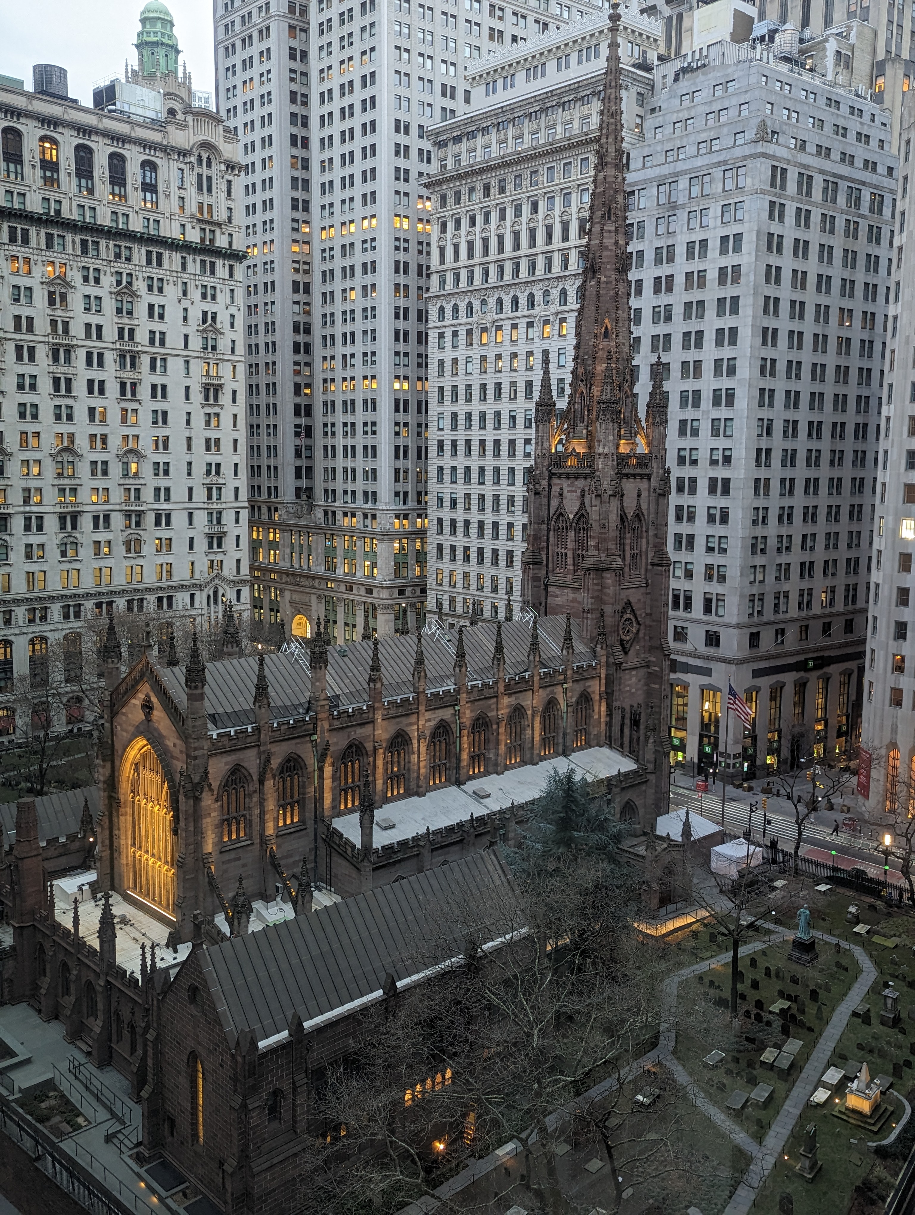 View of Trinity Church taken from Hotel Indigo, January 2023
